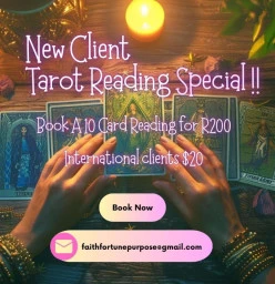 Calling all New Clients! Book a 10-card Tarot Reading with me for R200!! Readings are done remotely via email or pre-recorded video. Visit my website for more information or contact me directly to secure your spot.