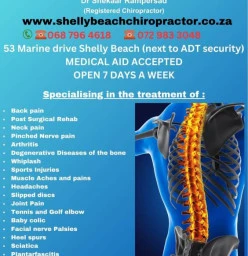 At our Chiropractic Clinic in Shelly Beach, South Coast, the purpose is to provide quality chiropractic services in a warm and friendly environment. We specialise in the treatment of headaches, back pain, heartburn & acid reflux, sciatica, neck pain, shoulder pain, colic and reflux in babies as well as pain,numbness and/or tingling in the arms and legs. Read more