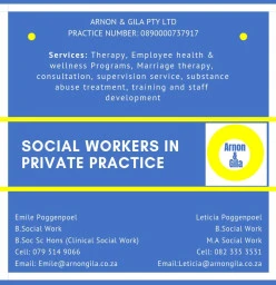 Arnon & Gila Practitioners (AGP) operates in the helping; and health and wellness industry. AGP offer a variety of quality psycho-social interventions. Some of our services include marriage enrichment, marriage therapy, stress management, health and wellness intervention, Substance Abuse Intervention, professional social work supervision and so much more... Our therapists Emile & Leticia are qualified clinical honors and masters level social workers. AGP is dedicated to tzedeq- [Clients making... Read more