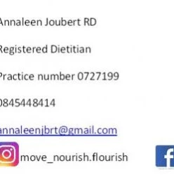 Annaleen Joubert is a registered Dietitian offering up to date scientific nutritional consultations. She works as a Diabetes educator and helps control many chronic diseases of lifestyle. She is passionate about helping people reach their health goals, and spreading the truth about health and wellness. Read more
