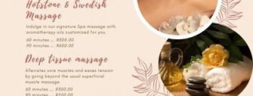 Petra Aroma invites you to come and relax with us at our newly opened Day Spa, with five star facilities. We are conveniently situated at Petra Lodge in Eastleigh, Edenvale, Johannesburg, and just 7 km's away from OR Tambo International Airport. We offer a variety of massages to suit your every requirement. We have the Swedish massage to relax you, but if you need to sort out your sore muscles, we can give you a Thai Aromatherapy Massage or just a Back Neck Massage. Our massages therapists are both... Read more