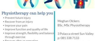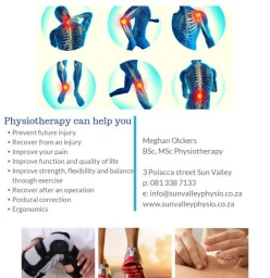We are a physiotherapy practice based in Strandfontein focused on improving the function and lifestyle of those around us. At our rooms, as well as home visits, we treat the following conditions: • Headaches and whiplash • Back and neck pain • Muscular – spasms, aches and tears • Arthritis • Peripheral joint injuries (shoulders, elbows, wrists, hip, knee, ankle, feet) • Surgical cases (pre and post-operative rehabilitation • Neurological fall outs • Chest infections • Spinal / posture... Read more