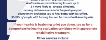 Hearing care professionals test, treat and advise in the prevention of hearing loss. We have undertaken specialized training and education and work in private practice We provide both clinical and counselling expertise. During your evaluation we will test your hearing, explain your hearing condition, refer you to an ENT, if necessary, and select and fit your hearing instruments. After fitting of your hearing instruments, you will be recalled for further adjustments and follow up appointments, to... Read more